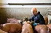 Bildet: Når griser skal fotograferes eller filmes kan de sminkes i begge retninger. Aktivistene har bevisst sminket bildene negativt, sier Tor Henrik Jule, her fra et bilde som er tatt i fjøset hans høsten 2020.