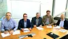 Bilde: Det ble et historisk møte mellom de sentrale aktørene i kjøttindustrien da durocavtalen ble signert i Oslo tirsdag 2. mai. Fra venstre Harald Furuseth (Furuseth slakteri), Ståle Gausen (Midt-Norge Slakteri), Leif Malvin Knutsen (Fatland), Hans Thorn Wittusen (Nortura) og Olav Eik-Nes (Norsvin). (Foto: Tore Mælumsæter)