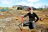 Han står på tomta hvor det snart skal reise seg et konsesjonshus for slaktegrisproduksjon. Fra før er det sau på garden. Det er bare et år siden tanken på å drive svineproduksjon dukket opp, og allerede til jul har han håp om å være klar til første innsett.