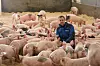 Jørgen Andvik får 310 smågris hver 14 uke fra en fast smågrisleverandør. Smågrisen starter livet på et 20 cm flislag som fylles på med halm etter behov. Det går ca. tre uker før det er behov for første rundball. Bildet er tatt fire dager etter nytt innsett.