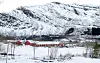 Bildet: Garden ligger i en stor og bred U-dal som strekker seg fra øst til vest i havet. De røde husa i forgrunnen er fjøset til de vinterfôra sauene.