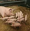 Halleland bygde nytt grisehus i 2001. I fødebingane går grisungane att til dei vert 30 kilo. Purkene går lause heile tida, og dei forsvinn ut av bingen etter fem veker når grisungane blir verande.